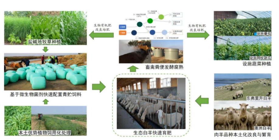 (三)循環(huán)利用,著力把資源變廢為寶。以畜禽養(yǎng)殖廢棄物(糞便尿)、農田秸稈為主要原料,采用高效好氧厭氧兼用微生物發(fā)酵菌種,配套自動化發(fā)酵裝置,促進堆肥發(fā)酵充分、能耗降低,實現(xiàn)農業(yè)有機廢棄物利用率達到100%。集成畜禽糞便發(fā)酵的優(yōu)質微生物菌種和發(fā)酵技術,研發(fā)高效生物有機肥的物料標準化配方。復配生產對土壤改良、作物健康生長、抗病抗重茬、農產品質量安全功能明顯,在設施種植中代替化肥改善土壤質量,化肥投入減少25%,速效氮磷鉀養(yǎng)分提升50%以上,提高植物抗逆性,進一步提高了作物產量與品質。此外,通過生物有機肥還田促進土壤團聚體的形成,配合牧草種植快速改善鹽堿地基礎地力。