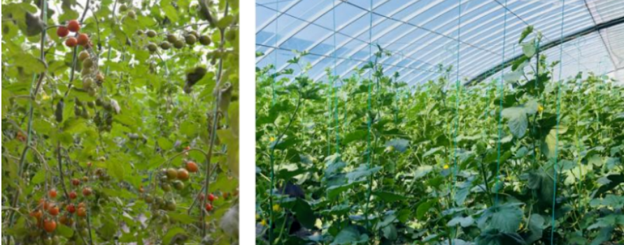 ▲“草-牧-園”濱海鹽堿地精致農業(yè)栽培:設施種植床(上),普羅旺斯番茄(下)