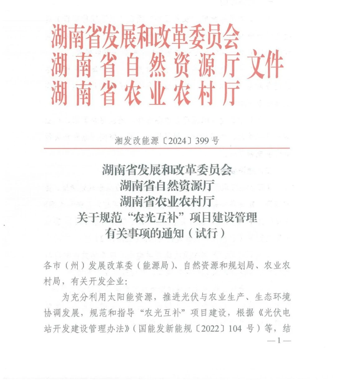 湖南省日前發(fā)布《關于規(guī)范“農光互補”項目建設管理有關事項的通知(試行)》,對湖南省的“農光互補”項目建設進行了進一步規(guī)范和指導。
