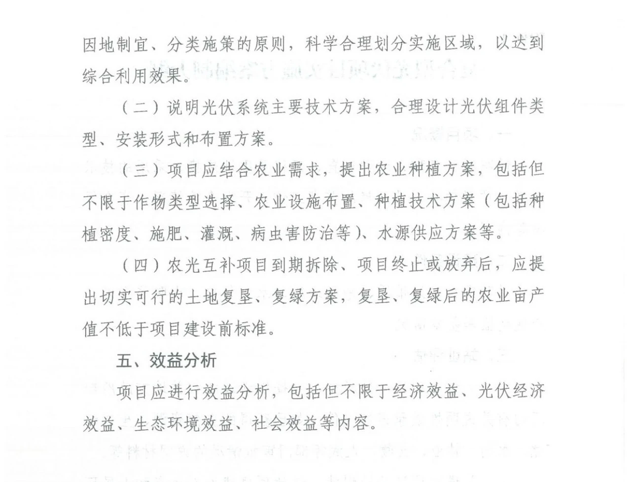 3、項目全容量并網后兩年內,應開展后評價工作,對農業(yè)生產效率、土地綜合利用效率等指標進行評估,形成后評價報告。