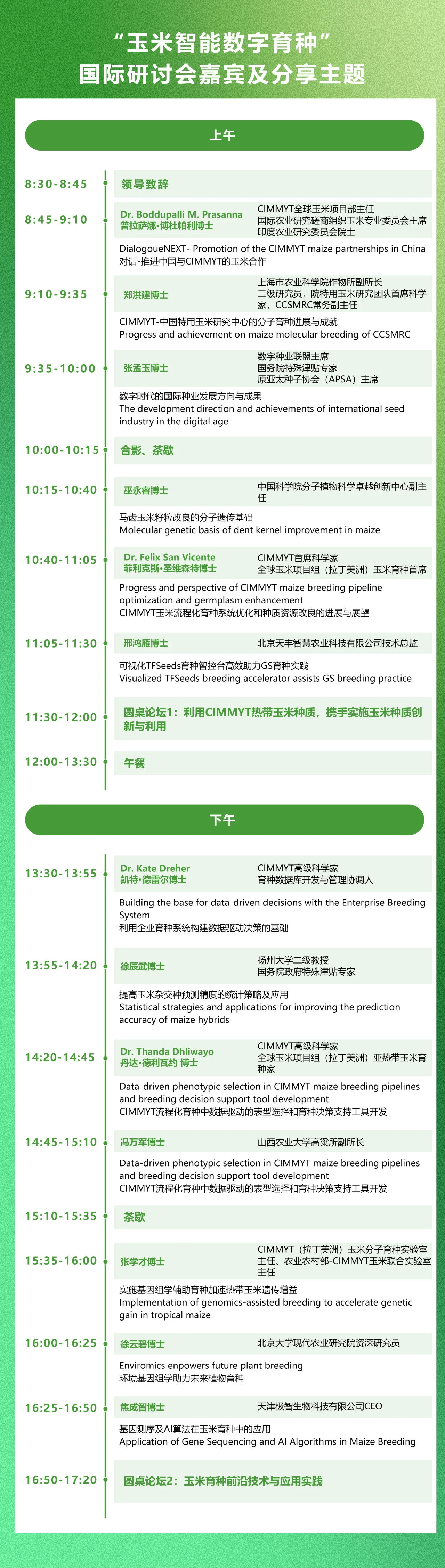 會(huì)議將匯聚一批杰出的報(bào)告嘉賓,他們將帶來精彩紛呈的議題和深入的討論,共同探討和分享玉米智能數(shù)字育種的最新進(jìn)展、技術(shù)突破和行業(yè)趨勢。這不僅是一個(gè)學(xué)術(shù)交流的平臺(tái),更是推動(dòng)育種科技創(chuàng)新和應(yīng)用的重要里程碑。