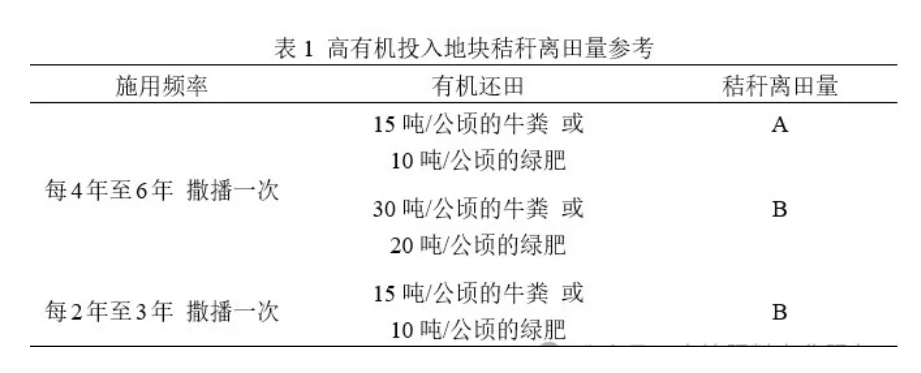 對(duì)于經(jīng)常撒播有機(jī)物料(如糞肥、堆肥、高C/N固體污泥)的地塊,例如圖2中的典型案例7,如果該地塊每3年每公頃接收超過約20噸糞肥,則需結(jié)合表1中的不同操作,選擇相應(yīng)的秸稈離田量A或B。選擇時(shí)僅考慮在土壤中轉(zhuǎn)化為腐殖質(zhì)的有機(jī)物料,通常也是高C/N(>15)的物料。