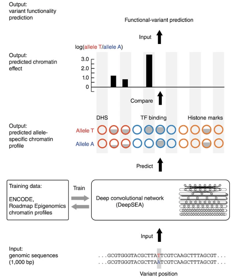 DeepSEA是專注于預(yù)測遺傳變異調(diào)控效應(yīng)的深度學(xué)習(xí)模型。遺傳變異是指DNA序列在個體之間或群體之間的差異,這些變異可能會對基因的功能和生物體表型產(chǎn)生影響。DeepSEA利用深度學(xué)習(xí)從大規(guī)模的染色質(zhì)分析數(shù)據(jù)中,以單核苷酸精度預(yù)測序列改變的染色質(zhì)效應(yīng)。這使得研究人員能夠識別出哪些遺傳變異可能對基因功能和作物性狀產(chǎn)生重大影響,為進(jìn)一步的研究和育種工作提供有價值的線索。