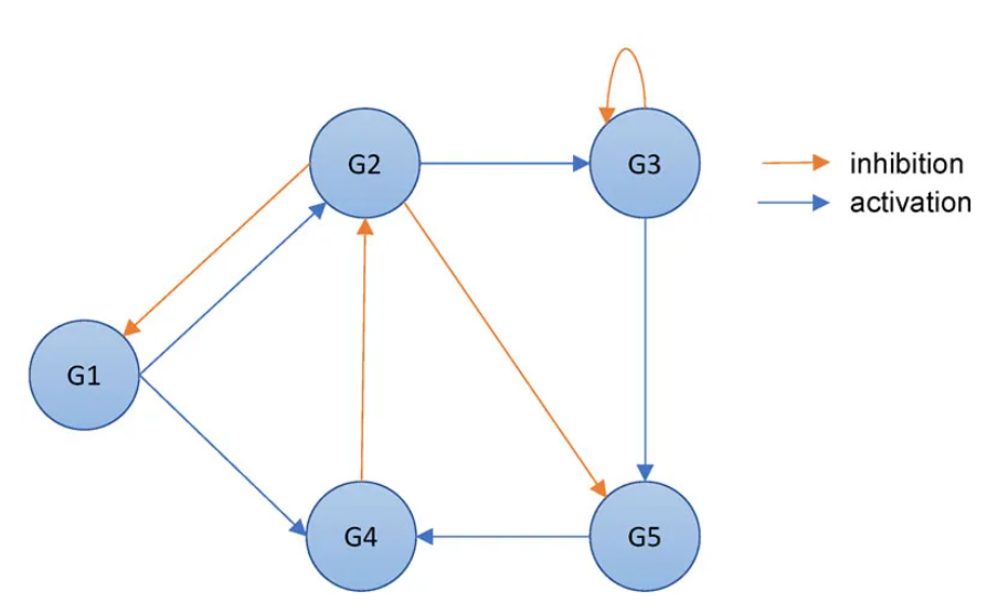 基因調(diào)控網(wǎng)絡(luò)(Gene regulatory network, GRN)分析是一種用于研究基因之間相互作用關(guān)系的方法。基因并不是孤立地發(fā)揮作用,而是在一個復(fù)雜的網(wǎng)絡(luò)系統(tǒng)中相互影響、相互調(diào)控,共同決定生物體的各種生理過程和表型特征。GRN分析旨在揭示這些基因之間的相互關(guān)聯(lián)關(guān)系,以及它們?nèi)绾螀f(xié)同工作來調(diào)控基因表達(dá)。該技術(shù)使用 AI 算法來構(gòu)建基因調(diào)控網(wǎng)絡(luò)模型。這個模型通過有向弧線(directed arcs)來表示基因之間的調(diào)控關(guān)系。調(diào)控基因可以通過激活或抑制兩種方式影響目標(biāo)基因。當(dāng)調(diào)控基因的表達(dá)水平發(fā)生變化時,例如其表達(dá)量增加或減少,一旦超過某個特定的閾值,就會對目標(biāo)基因的表達(dá)產(chǎn)生影響。這種影響可以是促進(jìn)目標(biāo)基因的表達(dá)(激活),也可以是抑制目標(biāo)基因的表達(dá),從而建立起一種因果關(guān)系,這種因果關(guān)系驅(qū)動著基因表達(dá)在生物體內(nèi)的動態(tài)變化。通過分析這些調(diào)控關(guān)系,研究人員可以深入了解基因如何相互作用以影響復(fù)雜性狀,并確定潛在的干預(yù)點,以便進(jìn)行作物改良等工作。