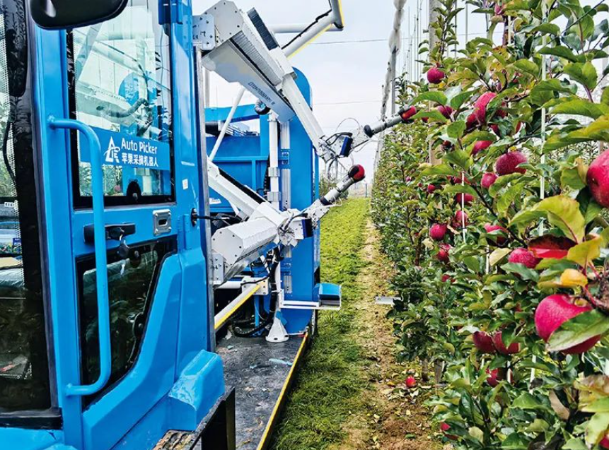 黨的十八大以來,我國農機裝備水平和農業機械化水平大幅度提升,為保障國家糧食安全、推動農業高質量發展作出了積極貢獻。圖為2024年11月3日,在陜西省黃陵縣景曦果園,我國自主研發的蘋果采摘機器人正在進行作業,實現了蘋果“采摘—收集—轉運”一體化智能采收。北京市農林科學院信息技術研究中心 供