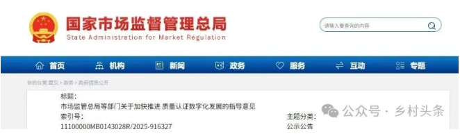 據市場監管總局網站9月12日消息,市場監管總局等部門發布關于加快推進質量認證數字化發展的指導意見。
