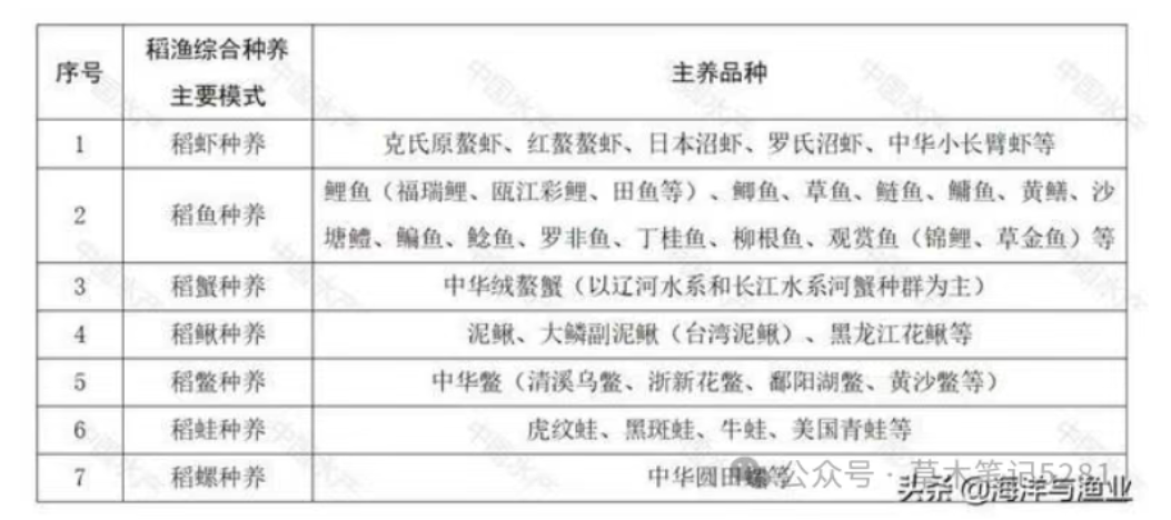 我國稻漁綜合種養按照水產養殖對象分,主要有稻蝦、稻魚、稻蟹、稻鰍、稻鱉、稻蛙、稻螺、稻魚鴨等8大模式。