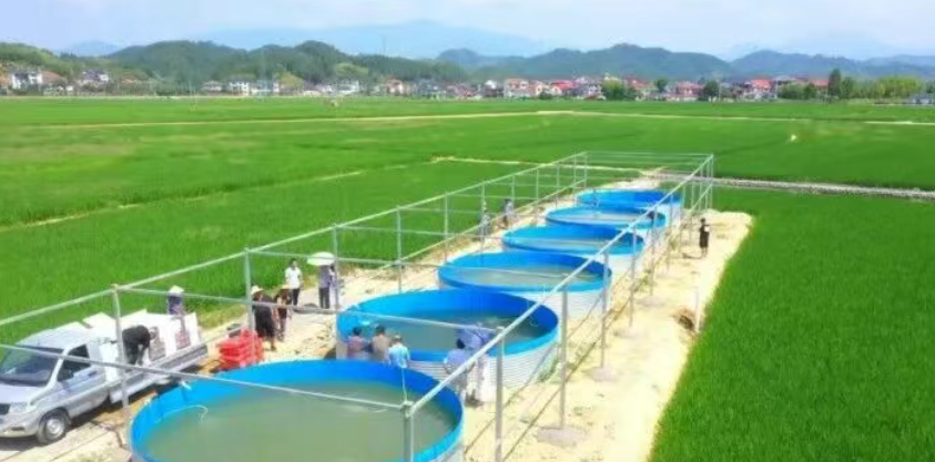 “稻田—陸基圓池”綜合種養是一種新型設施種養模式,它在原來“稻漁共生”基礎上進行了升級,將稻田單純散養改為設施“圈養”。配套建設水循環系統,搭建排水口,養殖的尾水排放到稻田里,通過稻田的吸收降解,既解決了養殖的尾水處理問題,也解決了稻田的肥料減量問題。該模式易管理、成本低、見效快,生態循環,更加綠色環保。
