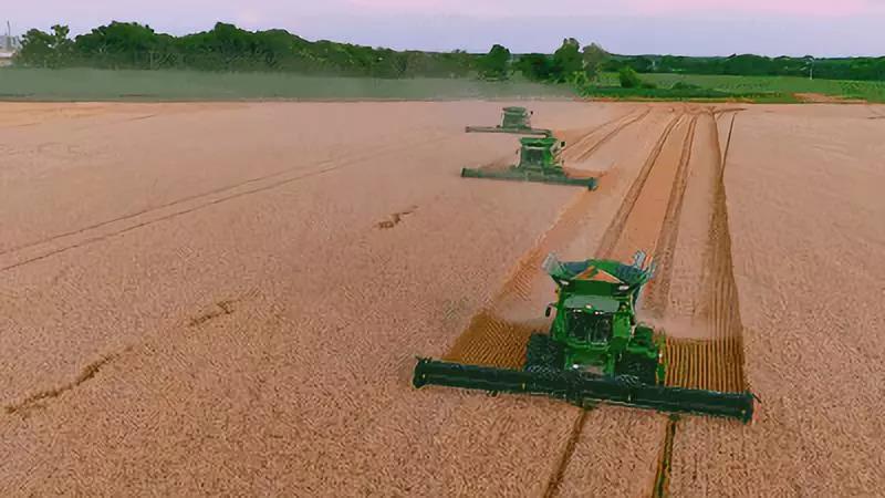 農業(yè)現代化是一望無垠的農田,以及農田里能夠把玉米小麥,剝粒裝袋的聯合收割機。