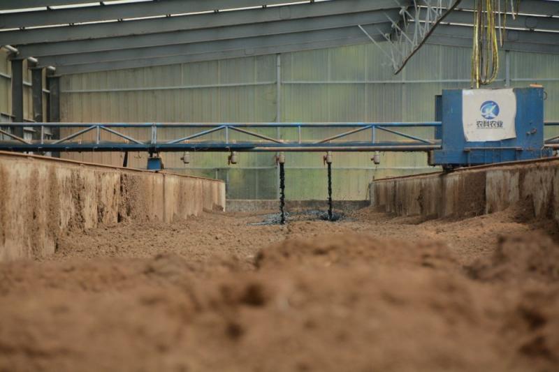 據了解,該公司利用“異位發酵床”技術,糞污通過預埋的管道,輸送到另一個廠房的儲液池內。只要輕輕按下按鈕,一臺半自動化機械就能將收集好的糞污撒到木屑、谷殼等墊料上,發酵后既是上好的有機肥原料,也是培養菌菇的優質基質。
