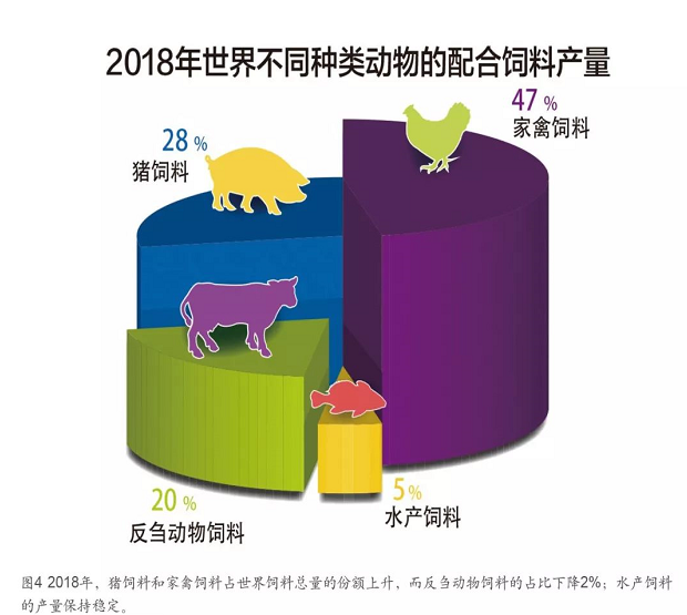 全球家禽飼料消耗量(肉雞和蛋雞飼料)約占世界飼料總產量的47%,其次是豬(28%)和反芻動物(20%)。