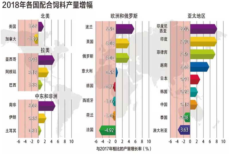 2018年,波蘭配合飼料產量上漲5.5%,英國增產大約4%,而西班牙、荷蘭和德國全都減產,降幅從1%到1.5%不等。