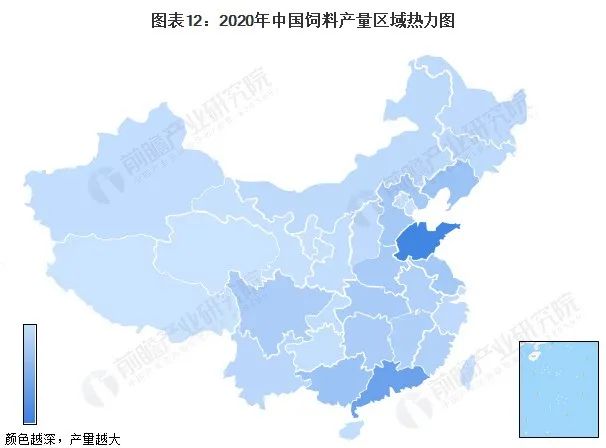 注:由于官方僅公布2020年全國少數省市飼料產量具體數據,因此大部分省市數據為估算數據,與實際數據有一定出入,屆時仍以官方公布最新數據為準,此熱力圖僅供參考。