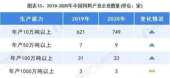 根據中國飼料工業協會發布的數據顯示,2020年,我國年產10萬噸以上的飼料企業有749家,較上年大幅增長;9家年產5萬噸以上;有33家飼料企業集團年產在33萬噸以上,3家生產能力超過千萬噸。