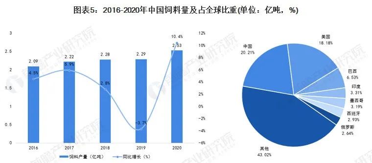 根據Alltech的全球飼料調查,我國在全球飼料生產中表現出強大的實力。2020年,我國飼料產量占全球飼料總產量的20.21%,位居全球第一。