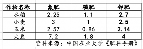主糧作物收獲物形成100千克經(jīng)濟(jì)產(chǎn)量所吸收的養(yǎng)分?jǐn)?shù)量