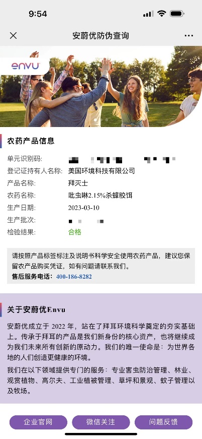 根植于拜耳的百年經驗,安蔚優Envu將“為世界各地的人們創造更健康的環境”作為唯一使命,以科學的解決方案、優質的產品為全球人類創造更健康的環境。安蔚優于2022年10月正式作為一家獨立公司繼續運營,同時安蔚優也將在有效成分和配方、產品、研發等方面持續與拜耳合作,共同致力于為全球人類環境提供高品質產品組合與服務。
