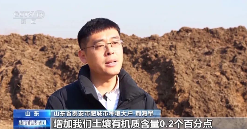 山東省泰安市肥城市種糧大戶 荊海軍:連續使用,增加我們土壤有機質含量0.2個百分點,同時減少化肥用量8%左右,每畝增加糧食產量在100斤左右,實現畝節本增收260元。