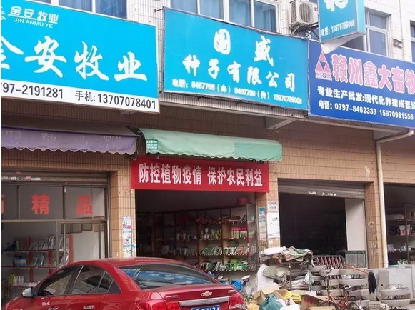 門店內到處充斥著刺鼻難聞的肥藥味,地面上雜七雜八地堆放著不知是什么時候進回來的產品,一張破舊的桌子上亂丟了一些產品做展示,上面還沾滿了灰塵。這就是經營戶所謂的“維持到現在”的生意?
