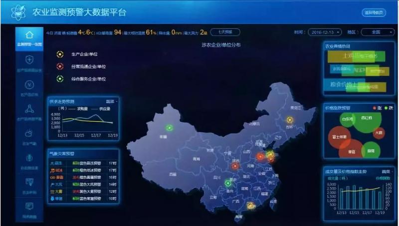 農業大數據是與農業物聯網相對應的概念,它是一個數據系統,在開放系統中收集、鑒別、標識數據,并建立數據庫,通過參數、模型和算法來組合和優化多維和海量數據,為生產操作和經營決策提供依據,并實現部分自動化控制和操作。因為它是在完全開放的系統中運作,因此主要用于大田農業的生產和農業全產業鏈的操作和經營。