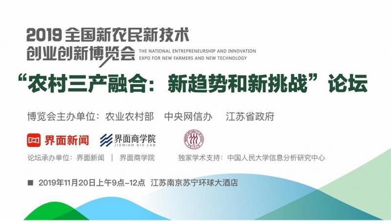 11月20日上午9時,界面新聞|界面商學院將在江蘇南京蘇寧環球大酒店舉辦本屆博覽會的“農村三產融合:新趨勢和新挑戰”分論壇,農業行業觀察作為獨家新媒體支持全程參與論壇招商及報道事物。