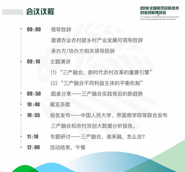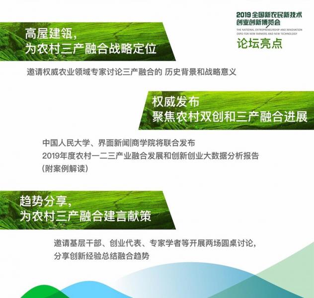 論壇將邀請權威專家解讀農村一二三產業融合發展的戰略意義,政商學界代表討論一二三產業融合的評價體系、分配機制和政府角色,并發布2019年度農村一二三產業融合發展和創新創業大數據分析報告,盤點各地產業融合的新業態、新模式和新趨勢。