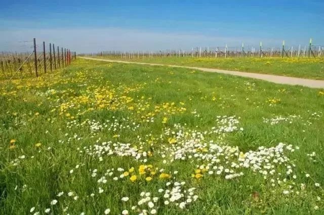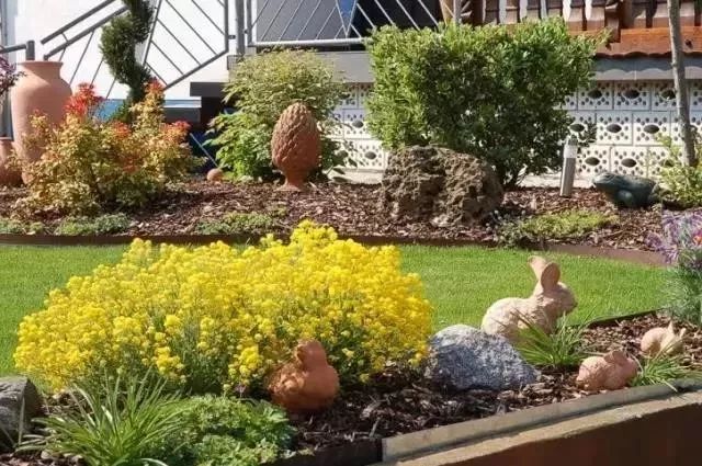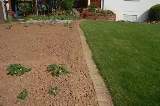 這家人比較會(huì)享受:一半草地,剪得很平,另一半,用來種花和草莓。