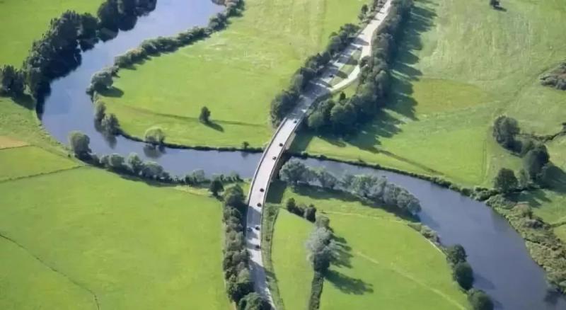 村外道路,人行道、非機(jī)動(dòng)車道與機(jī)動(dòng)車道分開。