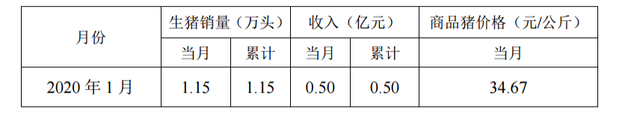 龍大肉食近日發布稱,全資子公司煙臺龍大養殖從事生豬養殖業務,2020年1月份銷售生豬1.15萬頭,環比下降9.45%,同比下降57.25%。2020年1月份,龍大養殖商品豬銷售均價為34.67元/公斤,比2019年12月份上漲6.02%。