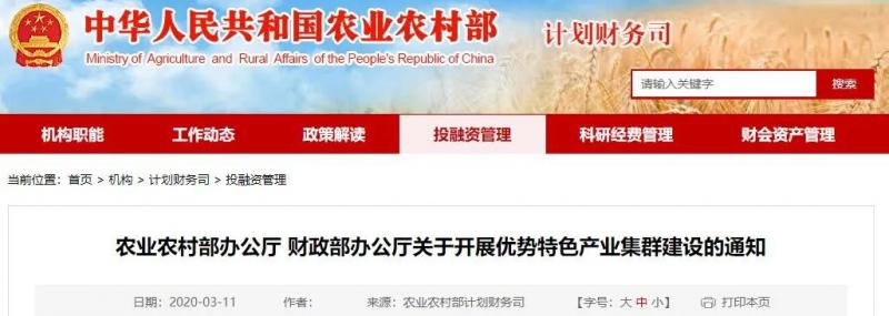 為貫徹落實鄉村振興戰略和2020年中央一號文件精神,加快深化農業供給側結構性改革,全面構建具有競爭力的現代農業產業體系,農業農村部、財政部決定組織開展優勢特色產業集群建設。現將有關事項通知如下。
