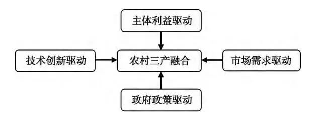 基于此, 中國農村三產融合也離不開這四方面的驅動, 即:技術創新、主體利益、市場需求和政府政策的驅動。