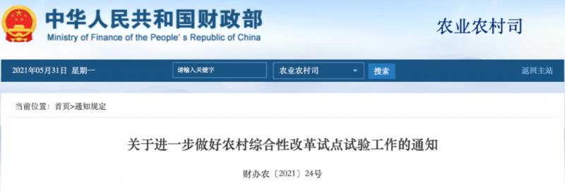 根據(jù)《中共中央 國(guó)務(wù)院關(guān)于深入推進(jìn)農(nóng)業(yè)供給側(cè)結(jié)構(gòu)性改革 加快培育農(nóng)業(yè)農(nóng)村發(fā)展新動(dòng)能的若干意見(jiàn)》開(kāi)展農(nóng)村綜合性改革試點(diǎn)試驗(yàn)和2021年中央一號(hào)文件全面推進(jìn)鄉(xiāng)村振興的有關(guān)部署,落實(shí)《中共中央關(guān)于堅(jiān)持和完善中國(guó)特色社會(huì)主義制度 推進(jìn)國(guó)家治理體系和治理能力現(xiàn)代化若干重大問(wèn)題的決定》有關(guān)精神,按照《國(guó)務(wù)院關(guān)于編制2021年中央預(yù)算和地方預(yù)算的通知》深入推進(jìn)農(nóng)村綜合改革的有關(guān)要求,以探索創(chuàng)新推動(dòng)鄉(xiāng)村全面振興的機(jī)制為根本任務(wù),加快推動(dòng)農(nóng)村改革擴(kuò)面、提速、集成,在總結(jié)2017年以來(lái)試點(diǎn)試驗(yàn)取得的成效和經(jīng)驗(yàn)基礎(chǔ)上,繼續(xù)支持有條件的地區(qū)開(kāi)展農(nóng)村綜合性改革試點(diǎn)試驗(yàn)(以下稱(chēng)試點(diǎn)試驗(yàn))。現(xiàn)將有關(guān)事項(xiàng)通知如下: