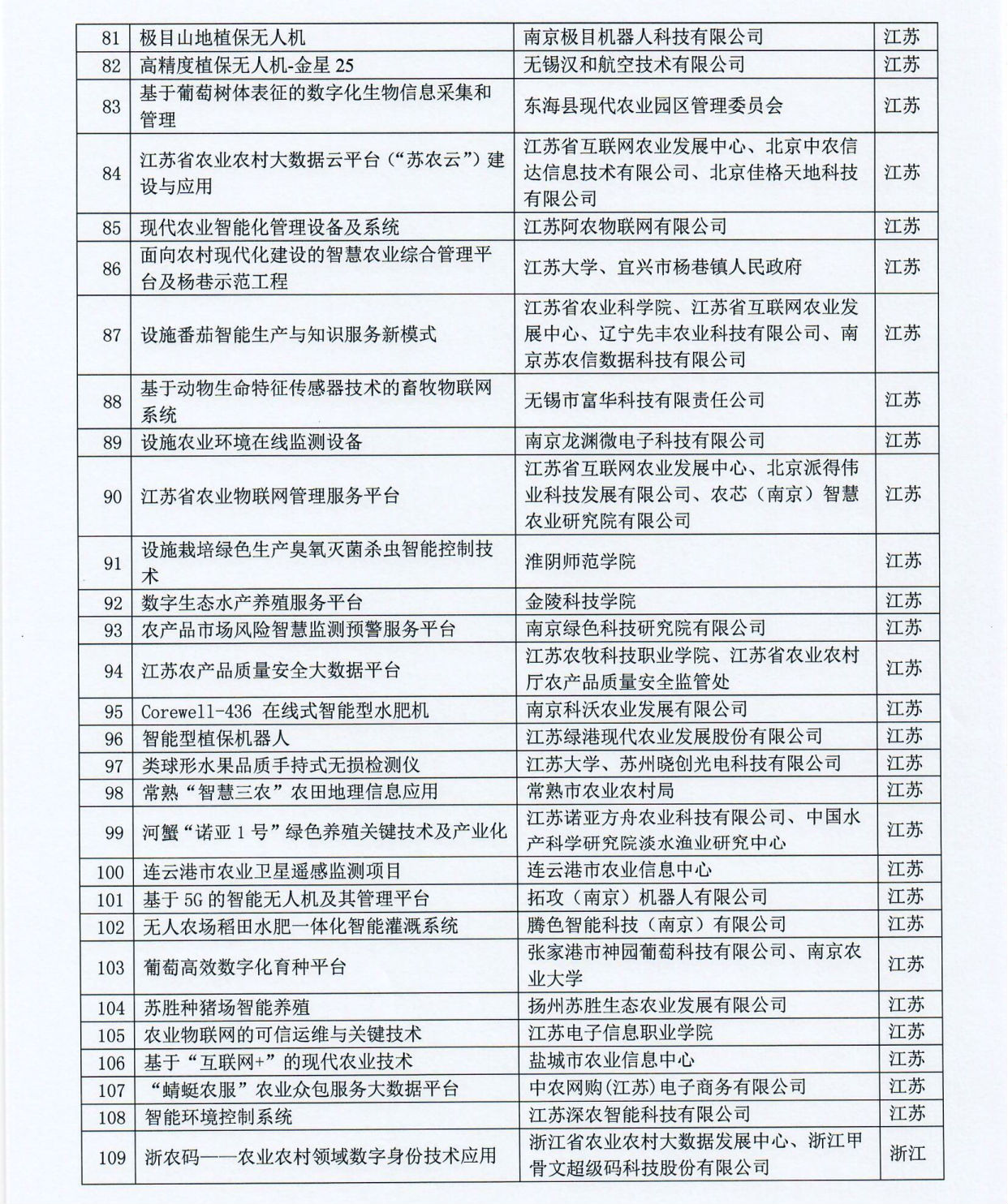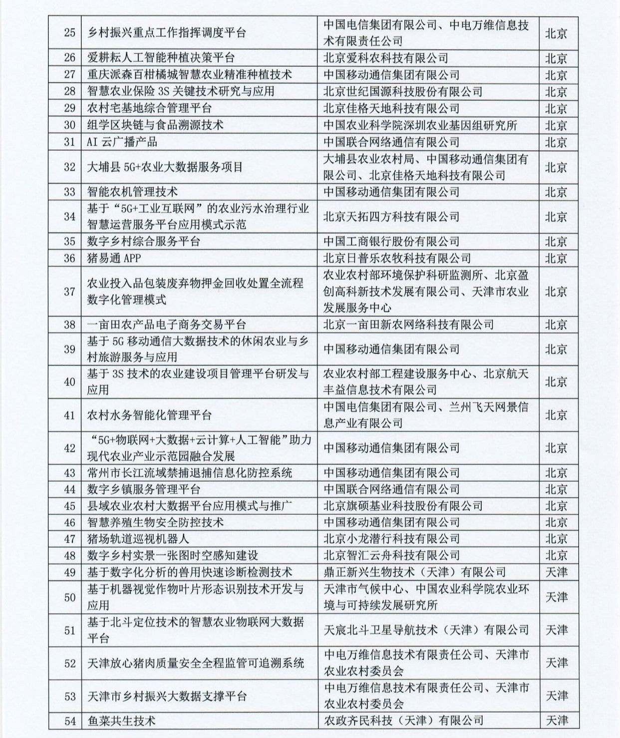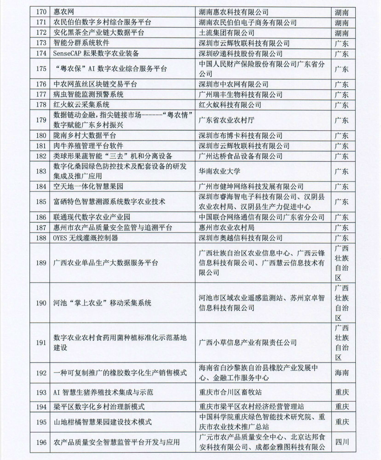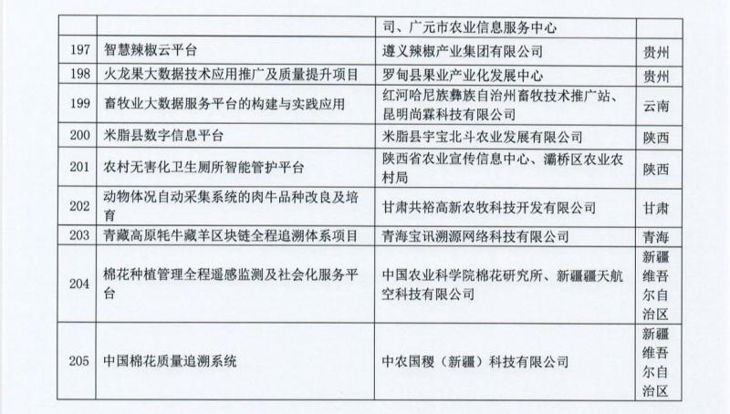 以下為205個數字農業農村新技術新產品新模式優秀案例名單