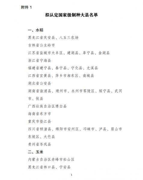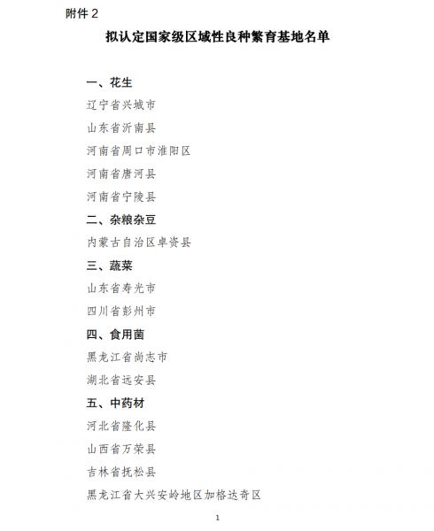 根據(jù)《農(nóng)業(yè)農(nóng)村部辦公廳關(guān)于認(rèn)定制種大縣和區(qū)域性良種繁育基地的通知》,農(nóng)業(yè)農(nóng)村部將評(píng)審?fù)ㄟ^(guò)、擬認(rèn)定的96個(gè)制種大縣和20個(gè)區(qū)域性良種繁育基地予以公示。