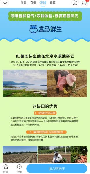 近日,有的人打開盒馬準備買貨,卻發現可以認領紅薯地了。