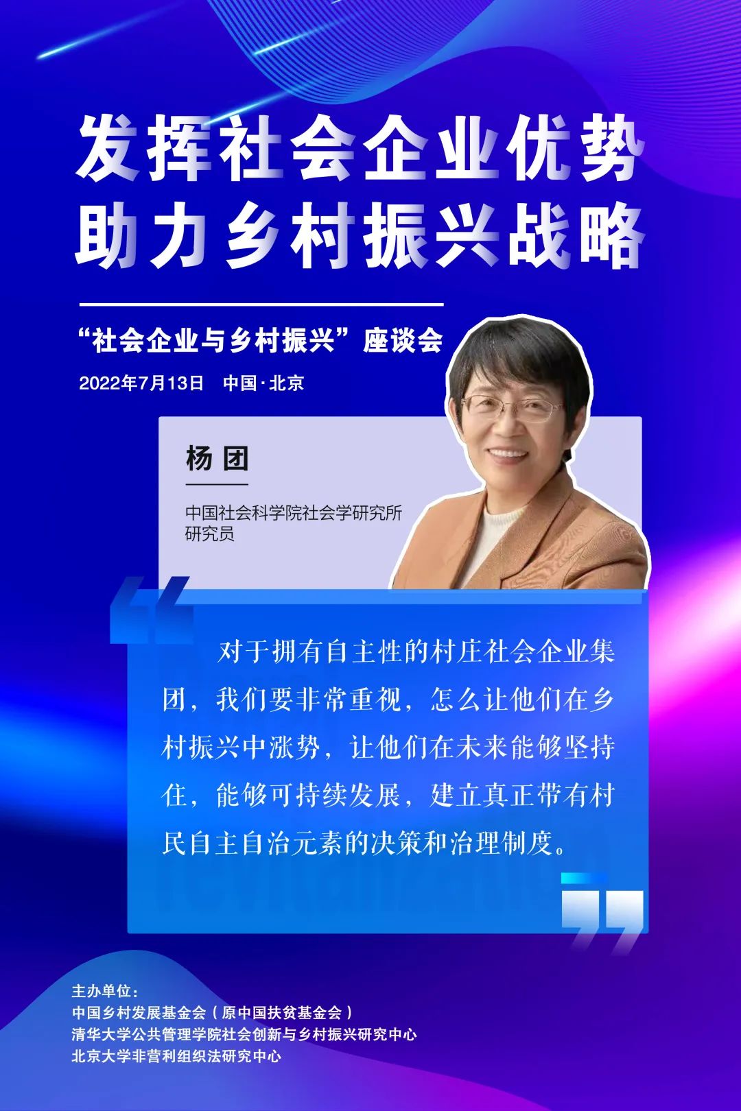 2022年7月13日,由中國鄉村發展基金會(原中國扶貧基金會)、清華大學公共管理學院社會創新與鄉村振興研究中心、北京大學非營利組織法研究中心共同主辦的“社會企業與鄉村振興”座談會在京舉行。本次會議以“發揮社會企業優勢,助力鄉村振興戰略”為主題,深入探討了社會企業如何更好地助力鄉村振興戰略。