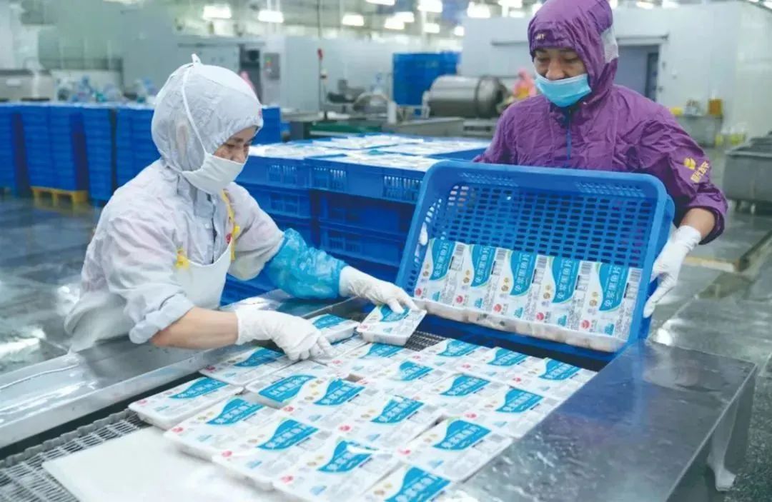 在一些沿海地區,藍色海洋成了預制菜強有力的供給來源。來到湛江市霞山區特呈島,記者看到當地漁民正在海面網箱旁喂魚。特呈養殖基地是我國最早一批深水網箱產業園示范基地。主營水產養殖、食品加工、智慧漁業的恒興集團經過公司、村委會、村民三方磋商,走出了“公司+基地+農戶+標準+服務”合作共贏的發展模式。通過發展預制菜產業,這種共贏模式得到強化,成功帶動當地村民500余戶實現增收,與當地村民共享產業發展成果。通過這種合作模式,農戶戶均增收上萬元,合作社一年還有幾十萬元分紅,這筆錢可作為村集體收入用于民生工程,實現了公司、農戶、村集體三方共贏。“這里養殖的金鯧魚百分之八十都可做預制菜,漁民們養殖更為規范,水產品的品質也更穩定不再愁銷路,我們也在推行數智化養殖,讓現代養殖更為安全智慧。”恒興集團食品供應鏈負責人張莉華介紹,因為預制菜市場的開拓,恒興去年投資建設草潭養殖基地,機械化、自動化程度更高,搭配U漁智慧漁業系統,產品實現全程可溯源,推動新一代信息技術與農業生產經營深度結合。