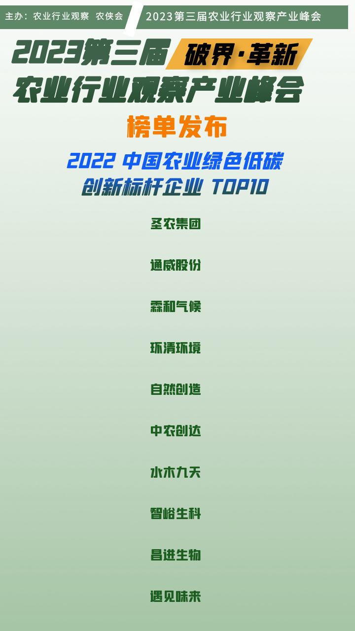 (2022 中國農(nóng)業(yè)綠色低碳創(chuàng)新標(biāo)桿企業(yè) TOP10)