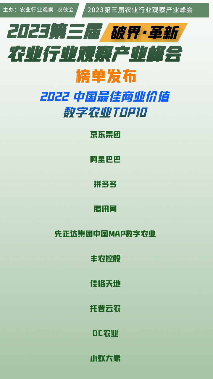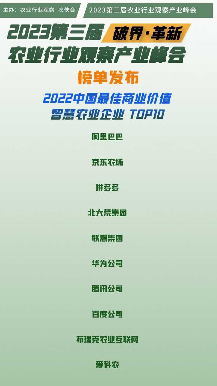 (2022 中國最佳商業(yè)價值數(shù)字農(nóng)業(yè)TOP10)