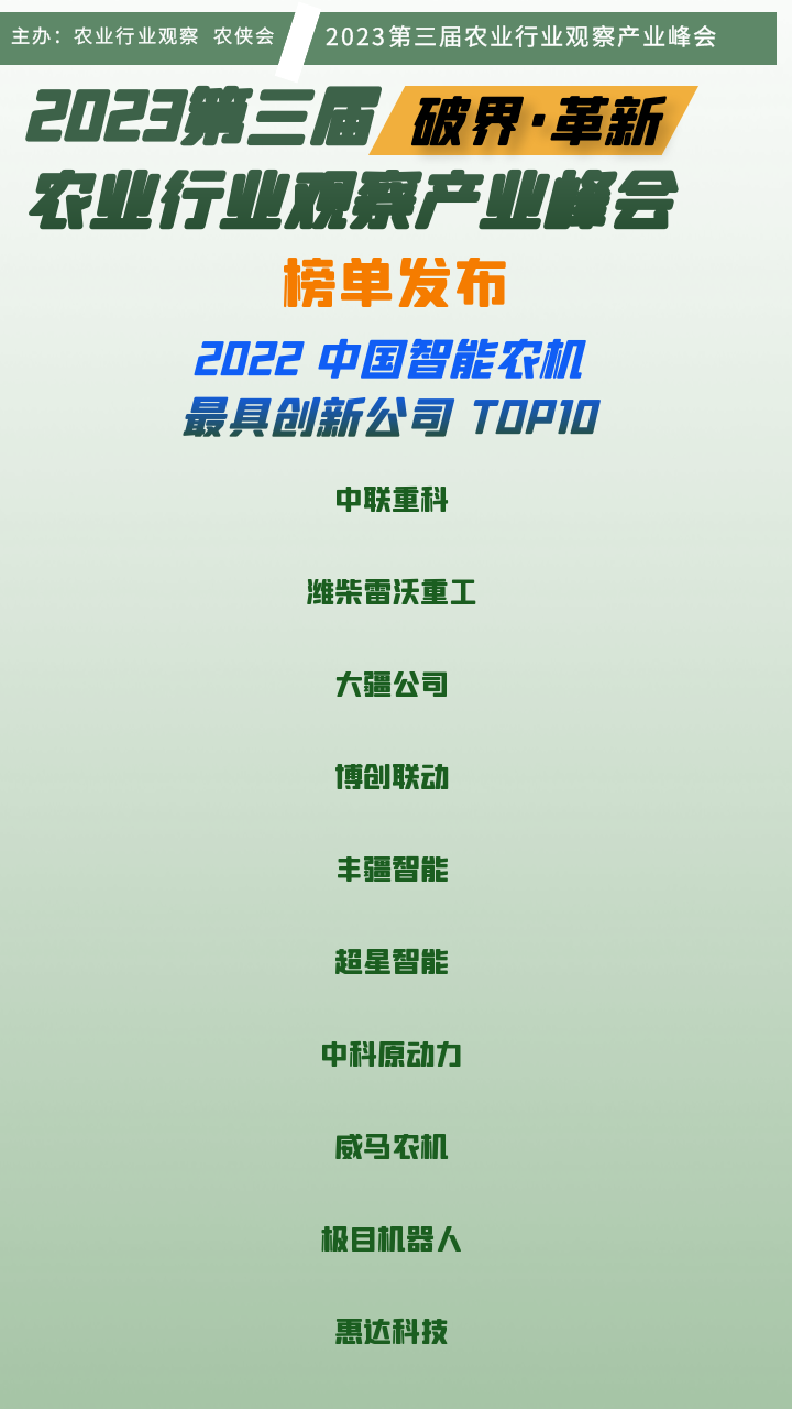 (2022 中國智能農(nóng)機最具創(chuàng)新公司 TOP10)