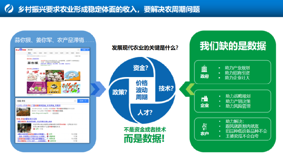 布瑞克非常早地提出來在農業發展和提升需要靠數據支撐的理念;畢竟,我們缺的不只是資金或者技術,其中資金或者技術在政策驅動包括在市場吸引下總是會有;但是數據體系、數據規劃包括數據作為公共品在業內的存在是非常缺失的。