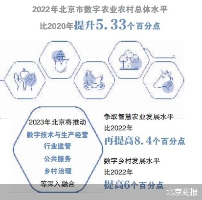 日前,由北京市農(nóng)業(yè)農(nóng)村局、市委網(wǎng)信辦聯(lián)合召集的北京市數(shù)字農(nóng)業(yè)農(nóng)村工作部署會(huì)(以下簡(jiǎn)稱“部署會(huì)”)召開(kāi),會(huì)上提出,2023年北京將推動(dòng)數(shù)字技術(shù)與生產(chǎn)經(jīng)營(yíng)、行業(yè)監(jiān)管、公共服務(wù)、鄉(xiāng)村治理等深入融合,爭(zhēng)取智慧農(nóng)業(yè)發(fā)展水平比2022年再提高8.4個(gè)百分點(diǎn),數(shù)字鄉(xiāng)村發(fā)展水平比去年提高6個(gè)百分點(diǎn)。
