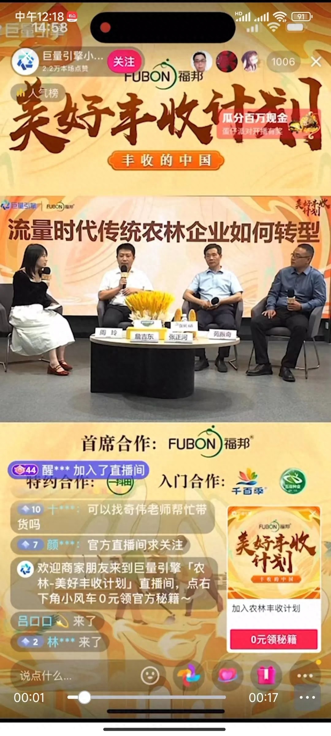 【豐收的中國-農林助力計劃】,是巨量引擎利用國家923豐收節這個節點,打造的針對農林行業的定制化營銷專項IP,旨在助力農林商家和創作者成長,通過直播、溯源游、創作者大會等系列內容,及豐厚的資源扶持與策略助攻,幫助本地農林品牌提升品牌力,增加轉化。