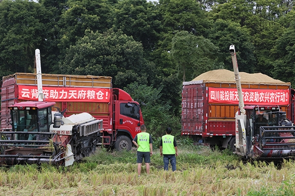 時下正是成都平原地區今年大春農作物的采收季,為助力“天府糧倉”成都平原地區糧食采收及收購工作有序推進,實現顆粒歸倉,促進糧食產銷精準對接,供銷系企業四川云背簍集團提前籌劃、精心組織,落實機械、倉容、資金、人員等要素,提前做好糧食產購儲加銷全鏈條協同統籌。于9月初,聯合四川能投新天府農資公司等國有企業組織收割隊前往成都環城生態區、新津區、蒲江縣、崇州市等區域開展了為期近20天的糧食采收工作,并完成了該批次糧食的烘儲和收購工作,幫助地方守住了農民“種糧賣得出”的底線。