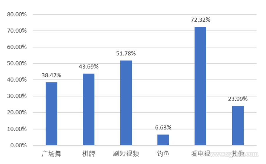 關于鄉(xiāng)村社會文化生活單調匱乏的現(xiàn)狀,從老年人日常的文娛活動形式即可以看出:72.32%的老年人依靠看電視打發(fā)時光,同時有51.78%的老年人依靠刷抖音、快手等短視頻度日,很顯然,這兩種娛樂方式都是非常個體化的娛樂方式,尤其是刷短視頻,對于老年人的精神生活,未必是一件好事情。已經(jīng)有很多相關的研究發(fā)現(xiàn),社交媒體的使用越多,個體的孤獨感和精神健康狀況越差。
