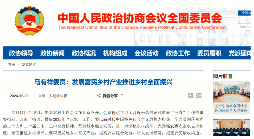 農(nóng)業(yè)農(nóng)村部原副部長、全國政協(xié)委員馬有祥: