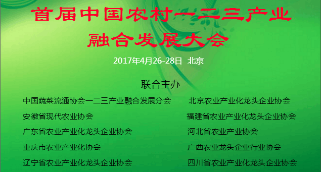 本網訊:為貫徹中共中央、國務院《關于深入推進農業供給側結構性改革加快培育農業農村發展新動能的若干意見》、《關于落實發展新理念加快農業現代化實現全面小康目標的若干意見》等文件有關精神,落實國務院辦公廳《關于推進農村一二三產業融合發展的指導意見》及農業部《全國農產品加工與農村一二三產業融合發展規劃(2016-2020年)》的有關部署,切實推進農業產業融合向縱深發展。由中國蔬菜流通協會一二三產業融合發展分會、北京農業產業化龍頭企業協會、安徽省現代農業協會、福建省農業產業化龍頭企業協會、廣東省農業產業化龍頭企業協會、河北省農業產業協會、重慶市農業產業化協會、廣西農業龍頭企業行業協會、遼寧省農業產業化協會、四川省農業產業化龍頭企業協會、內蒙古農牧產業化龍頭企業協會、湖南省農業產業化協會等十多家行業協會聯合主辦的“首屆中國農村一二三產業融合發展大會”(以下簡稱“大會”)定于2017年4月26-28日在北京舉行,屆時大會將邀請國家發改委、農業部、科技部、商務部等政府有關部門領導,中央黨校、國務院發展研究中心、中國社科院、中國農業大學等專家學者,各級農業主管部門領導以及農業龍頭企業負責人,農業產業融合發展示范單位、農村電商企業、金融機構代表齊聚一堂,共同研討一二三產業融合發展中的熱點、難點,大會將成為農業產業融合發展工作中的政策解讀、信息發布、經驗交流、資源共享、項目對接的常設性高端合作平臺。