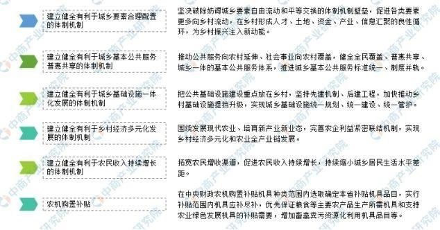 除了產(chǎn)業(yè)方面外,金融體制機(jī)制、農(nóng)業(yè)科技等硬件方面的支持也不少。在《關(guān)于建立健全城鄉(xiāng)融合發(fā)展體制機(jī)制和政策體系的意見》中提到五點(diǎn)促進(jìn)金融城鄉(xiāng)融合發(fā)展的體制機(jī)制;在《2019年重點(diǎn)強(qiáng)農(nóng)惠農(nóng)政策》提出了如耕地地力保護(hù)補(bǔ)貼、農(nóng)機(jī)購置補(bǔ)貼等。