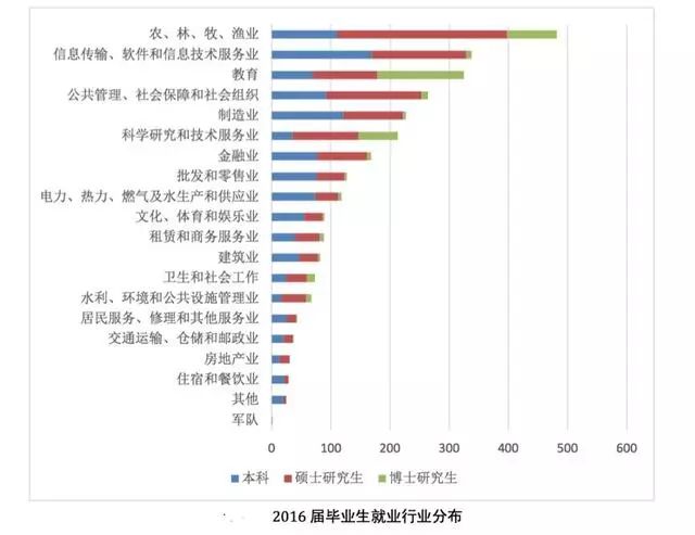 而除了就業與升學,公務員在記者的調查中也是畢業生們所選擇的高頻行業。除此之外,教育、金融、制造業等各行各業也都有農大畢業生的身影。