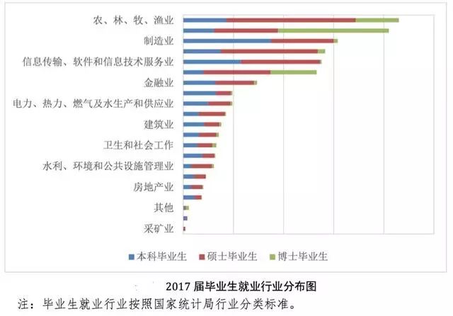 對就業環境的困惑,使得不少學生選擇以升學的方式換取更好的就業機會。《中國農業大學2017年畢業生就業質量報告》中,碩士生就業比例高達82.36%,遠遠超過當年9.61%的升學比例。